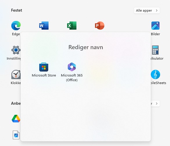 Startmenyen viser programmer du ofte bruker. Nå kan du gruppere disse (på samme måte som man kan gjøre med ikoner på telefonen).
