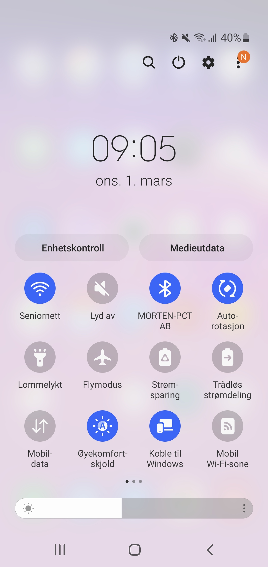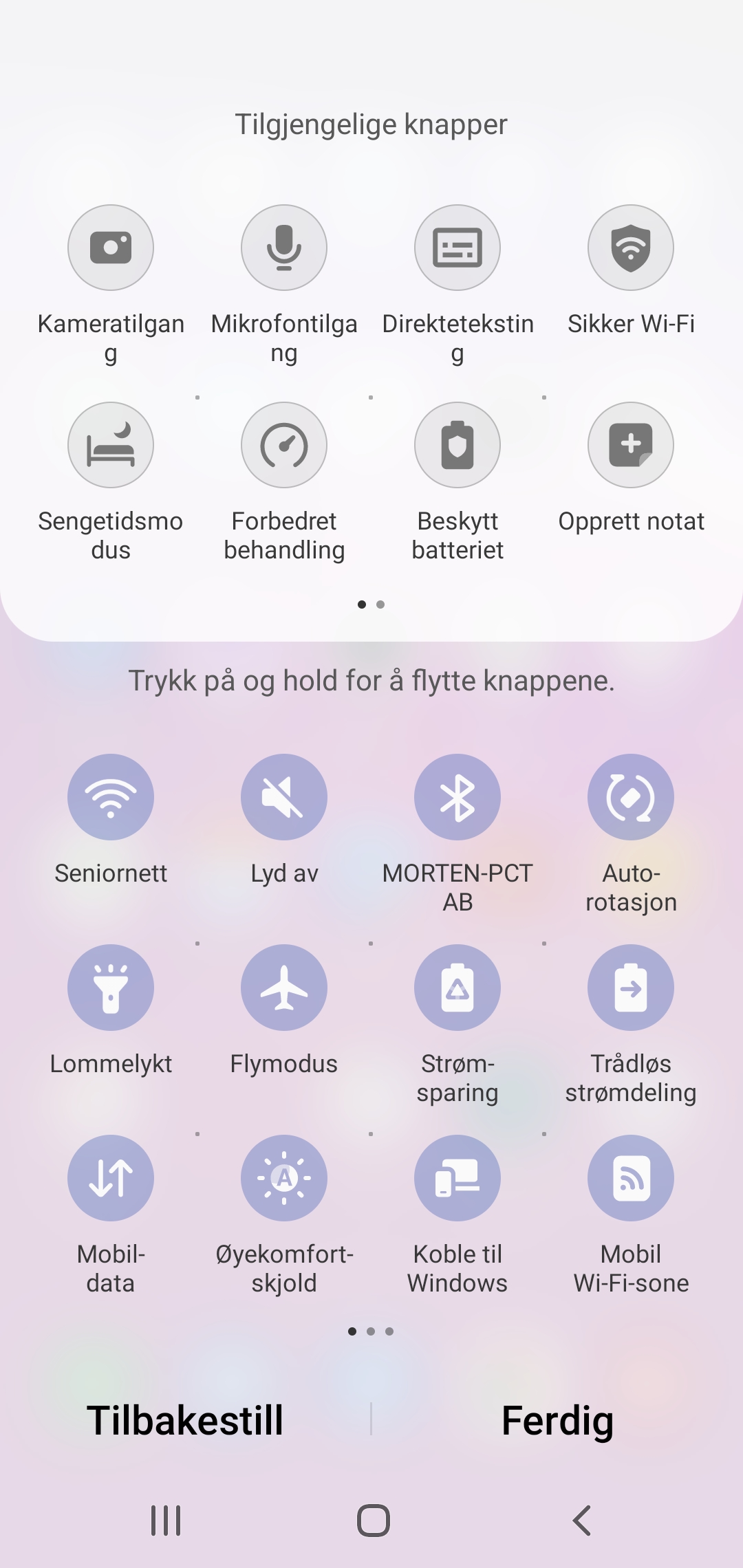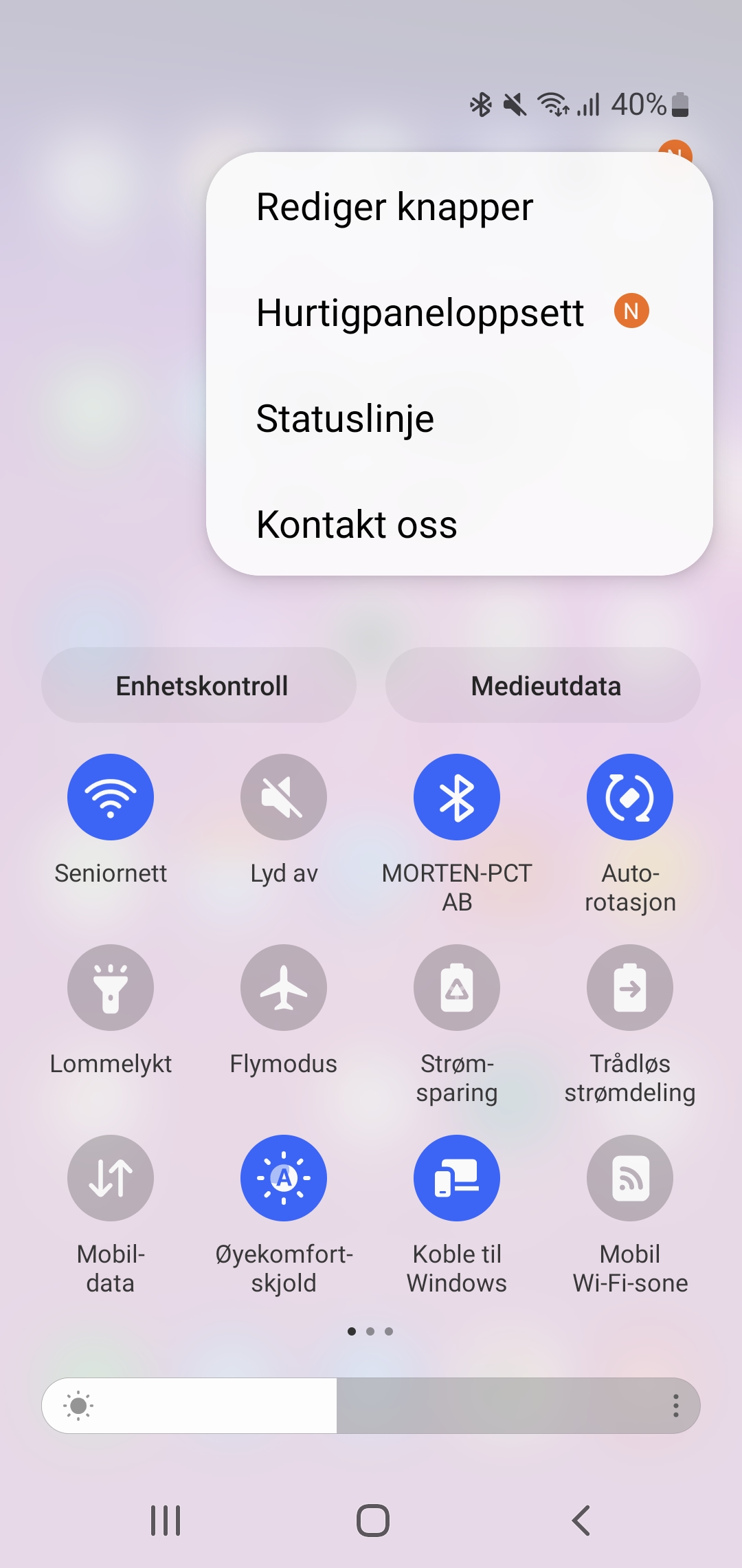 Hurtigmenyen er de brikkene som vises når du sveiper ned fra toppen. Du kan velge hvilke brikker du vil skal vises der. Tanken er at de tingene du gjør ofte bør ligge der slik at det er enkelt å slå det av og på. Dette er stort sett valg som man enten vil slå av eller på.