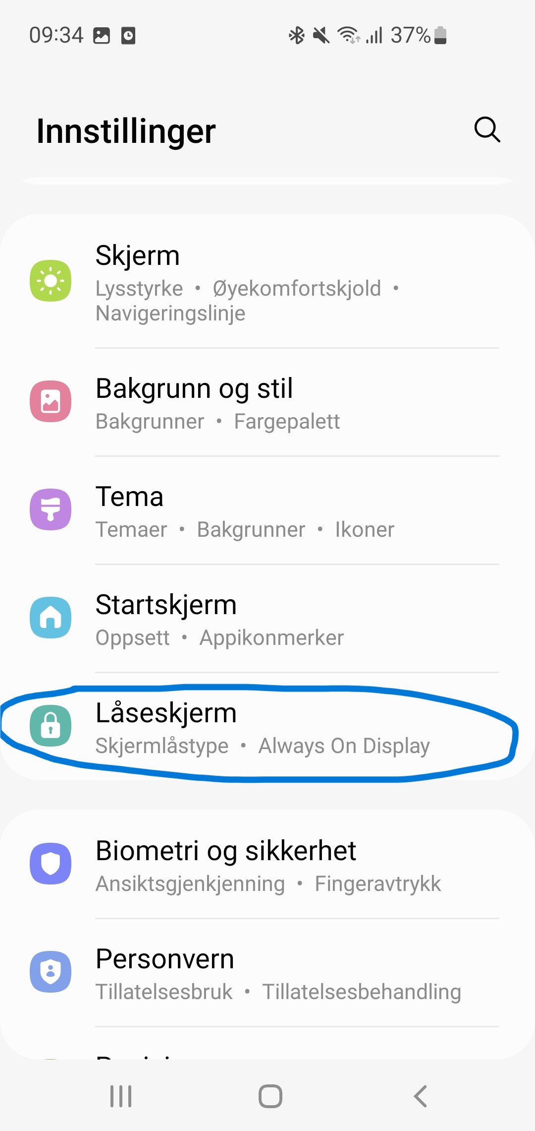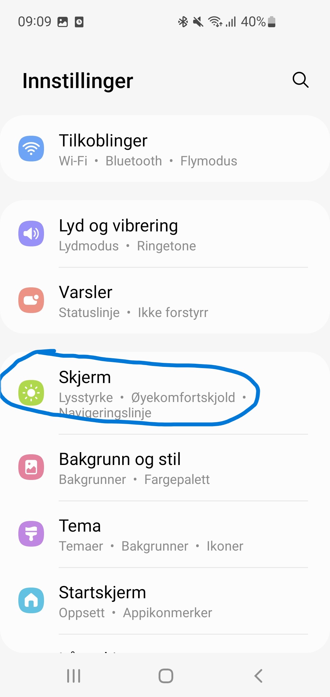 - Gå til innstillinger (tannhjulet), og velg “Skjerm”: