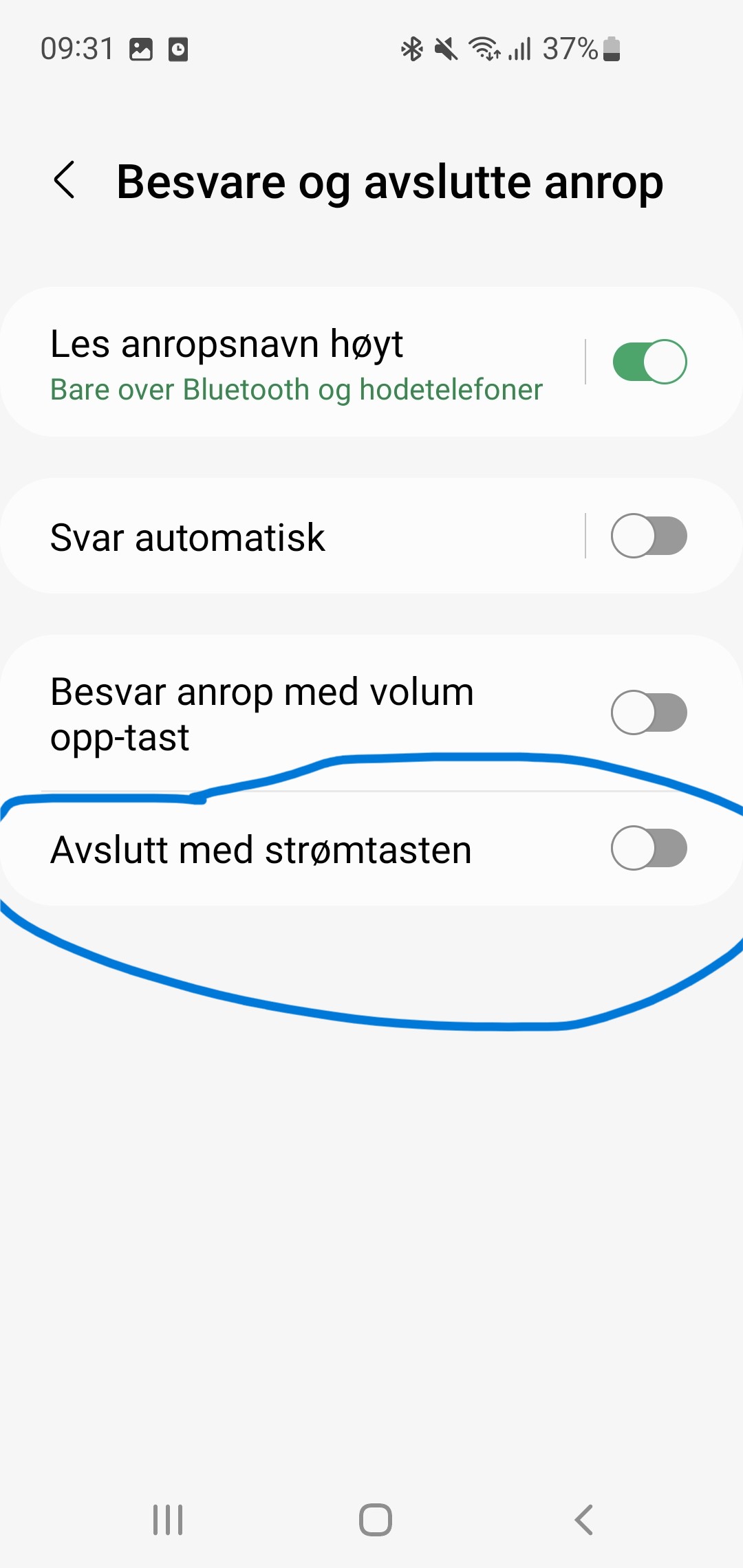 Innstillinger -> Tilgjengelighet -> Samhandling og Smidighet -> Besvare og avslutte anrop -> Avslutt med strømtasten