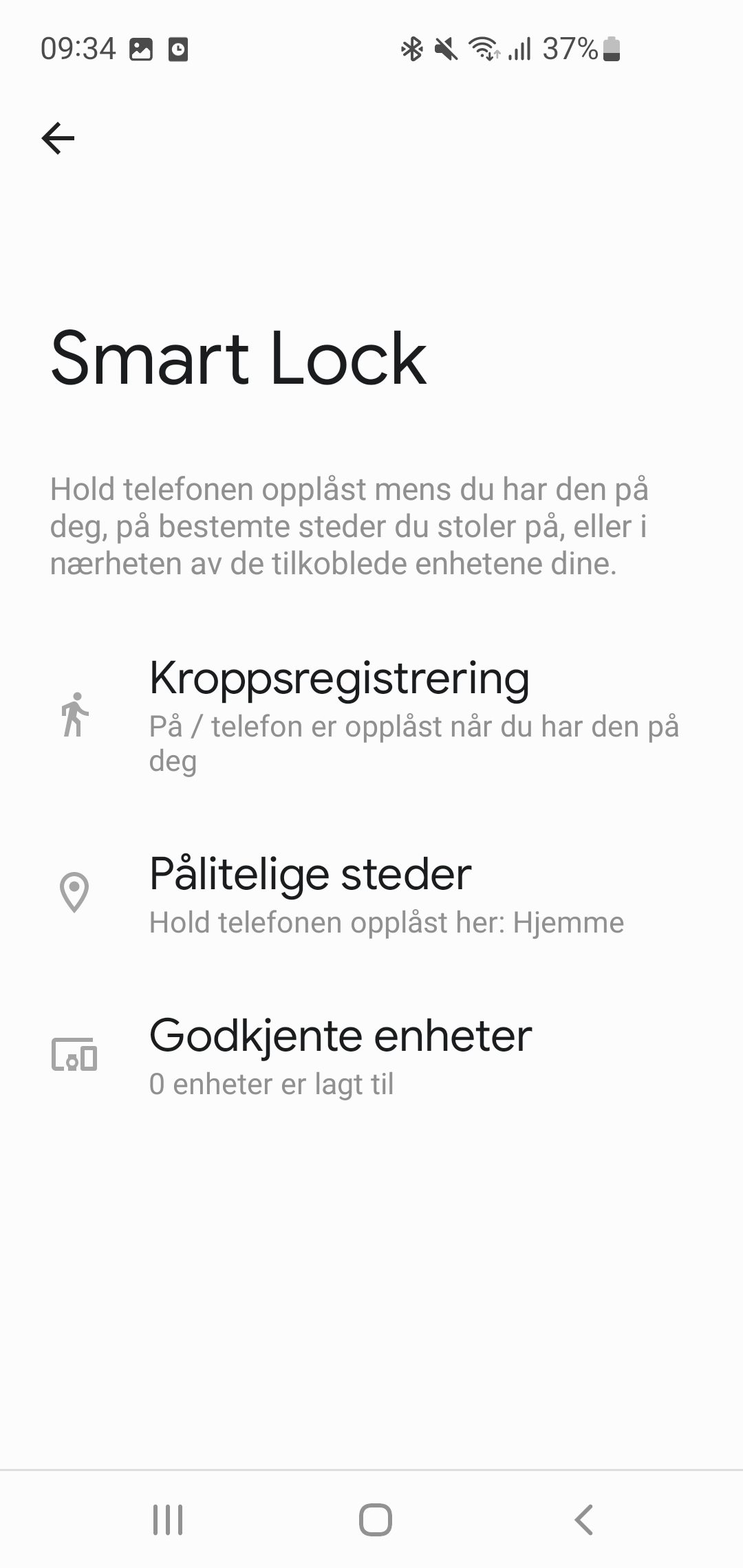 Smart-lås innebærer at telefonen ikke bli låst når den er i nærheten av deg, befinner seg på et spesielt sted (for eksempel hjemme hos deg) eller er i nærheten av en annen “dings” (for eksempel din smartklokke eller din PC).