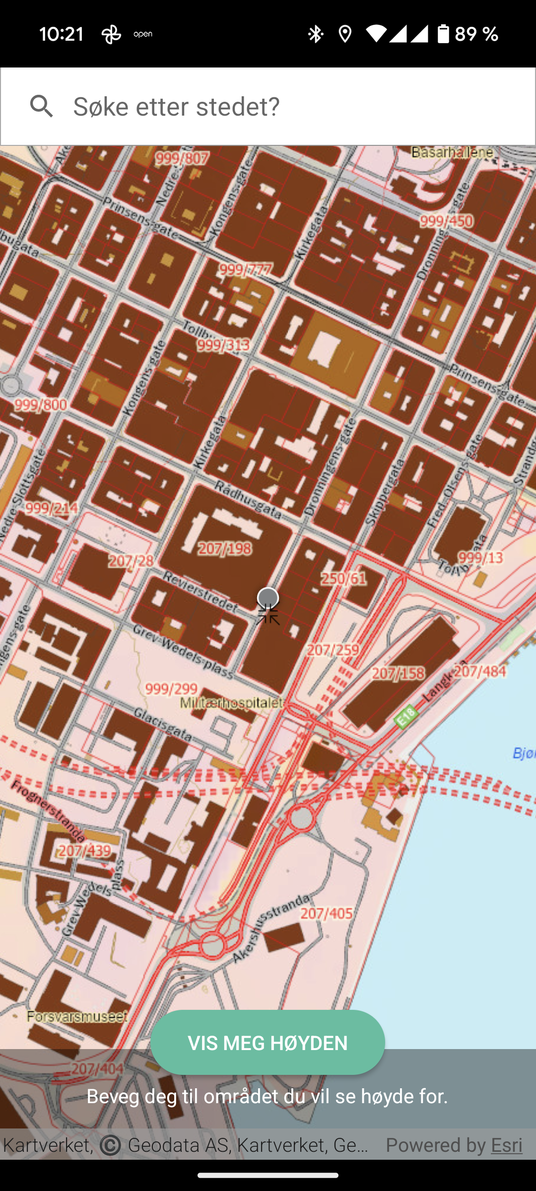 Når markøren er over der du ønsker trykker du på Vis meg høyden.