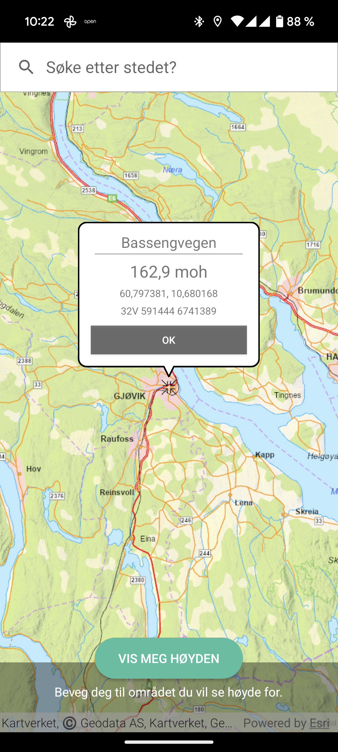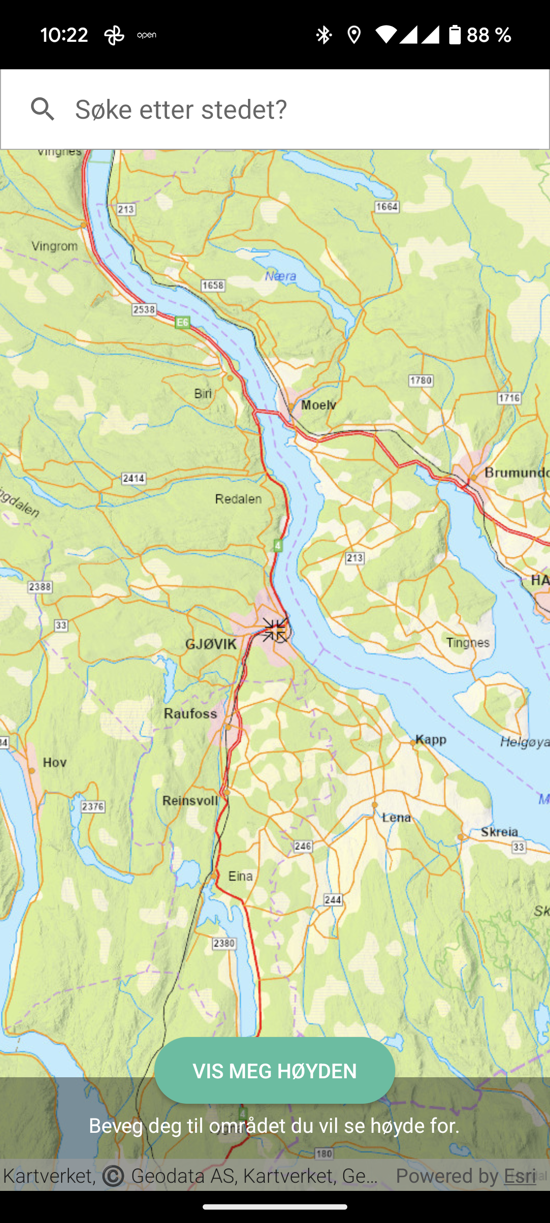 Så drar og zoomer jeg til jeg ser at markør er over Gjøvik: