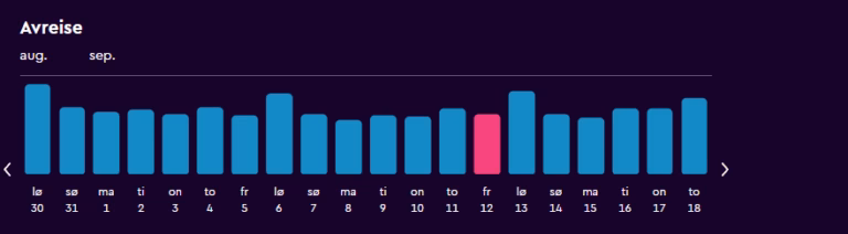 Som vi ser er det mange ulike flighter til ulike tider og priser
