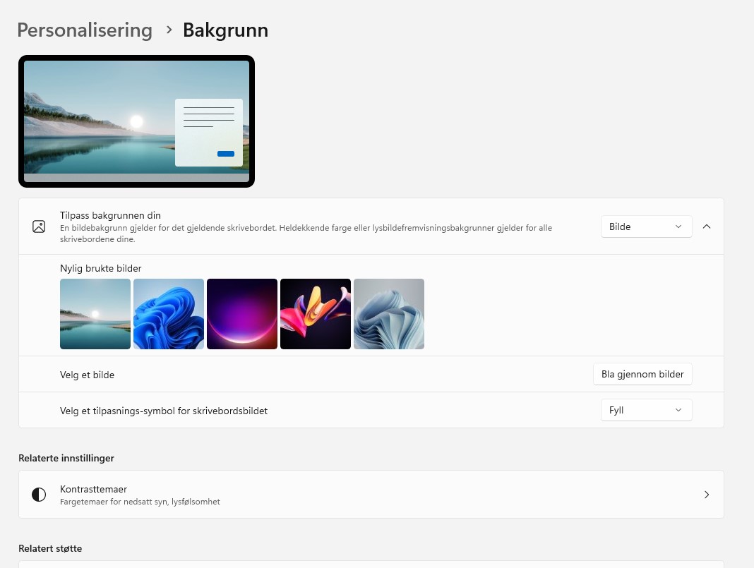Her er en oppskrift på hvordan du kan legge inn ditt eget bilde som bakgrunn (og litt om hvilke andre muligheter du har til å lage din egen bakgrunn). Denne artikkelen gjelder PC og Windows11. Det vil sannsynligvis også virke ok på Windows10.