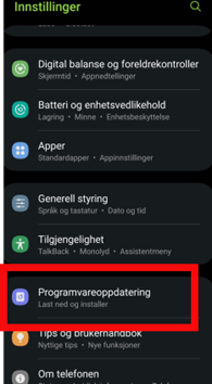 - Rull ned til du finner enten «Programvareoppdateringer», «Systemoppdateringer», «System og programoppdateringer» eller noe lignende. Trykk der.