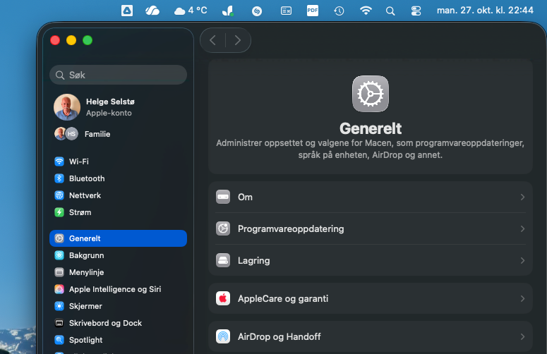 Her går du inn på Systeminnstillinger og velger “Generelt”: