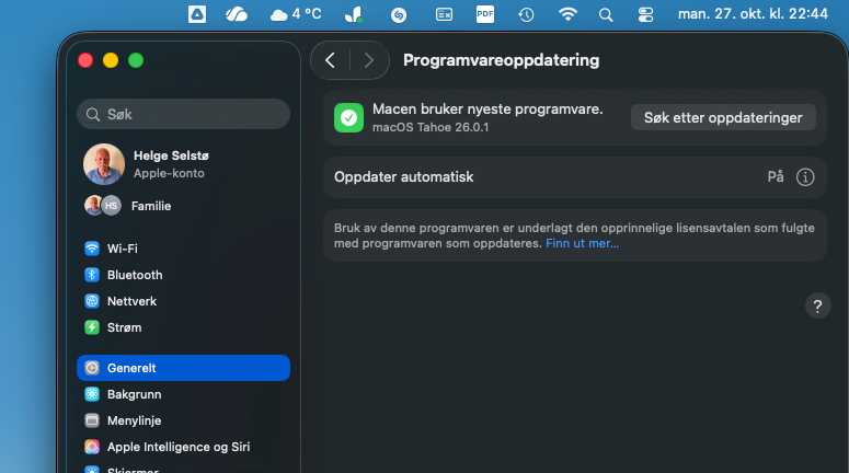 Som du ser er det er en bryter “Oppdater automatisk” som det er lurt å ha stående på.