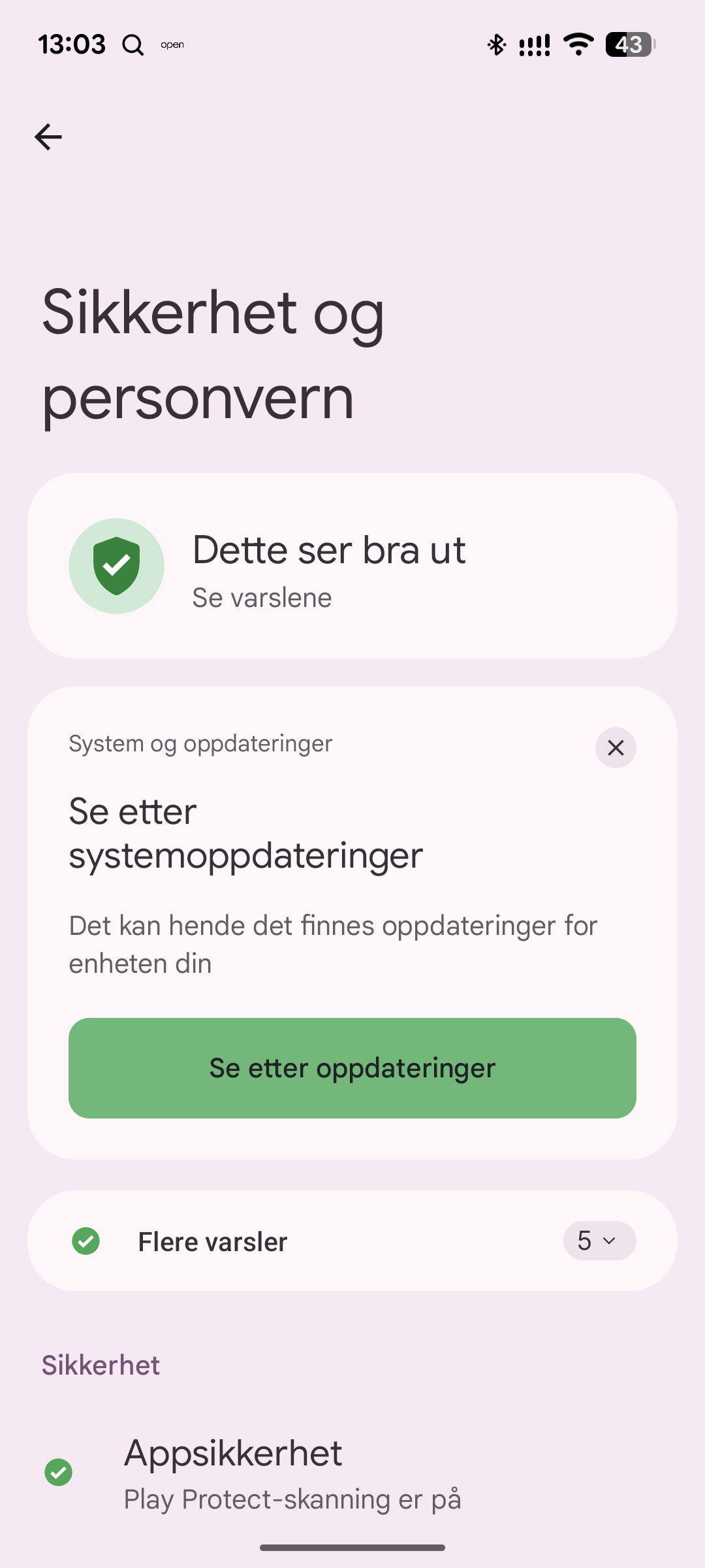 Men på alle må man gå inn på “Innstillinger” og lete etter Sikkerhet eller Oppdateringer