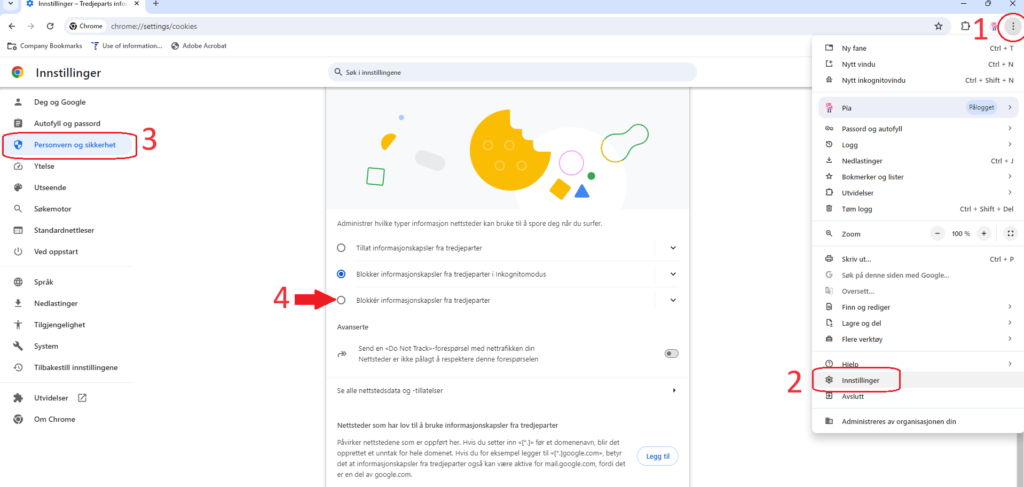 Du har alltid muligheten til å trekke samtykke via å blokkere cookies fra innstillinger i nettleseren din. Her kan du slette alt, deler eller blokkere tredjepartscookies helt.