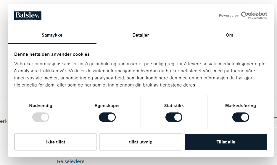 Er du komfortabel med å dele mer data enn strengt tatt nødvendig for at nettsiden skal fungere er det helt i orden å trykke “Aksepter alt” eller “Tillat alle”.