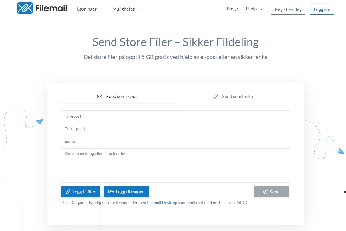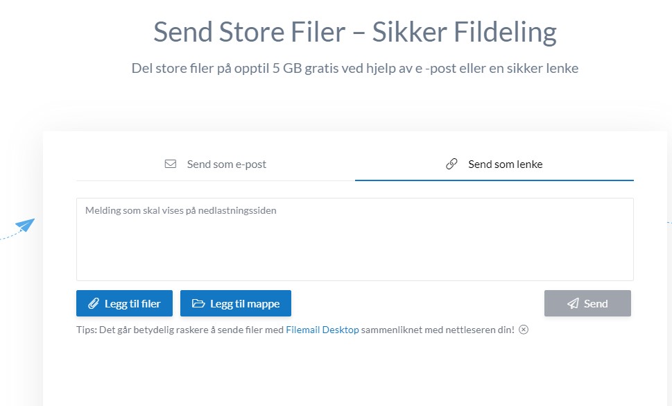Oppskriften gjelder ved bruk av PC. Her brukes nettstedet Filemail.com. Det finnes andre tilsvarende steder, men vi har sett på et som er gratis og enkelt å bruke