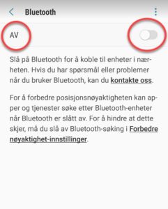 • Aktiver bare Bluetooth og Bluetooth synligheten hvis du trenger det. Dersom du ikke trenger det går du til Innstillinger og slå den av.