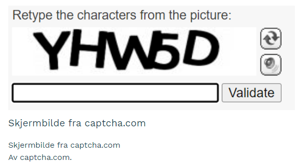 Du skal altså bruke din hjerne og skrive inn svaret. Svaret kan også være at du skal klikke på de bildene som inneholder (eller ikke inneholder) en spesiell type objekt.