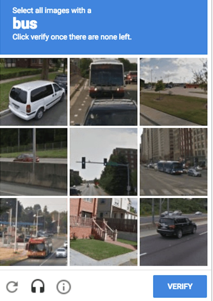 Du må velge bilder som inneholder spesifikke objekter (slik som i eksemplet over med busser) - Lyd