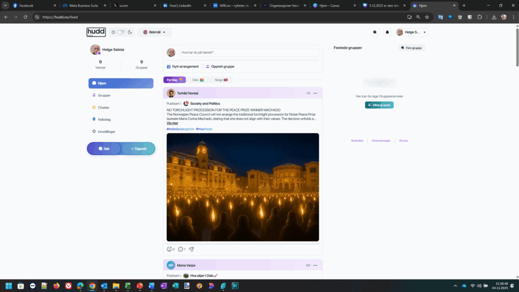 Hudd er en relativt ny, norsk app og nettsted som kan beskrives som et digitalt samlingssted for folk som bor i samme nabolag eller lokalområde. Noen av Seniornetts lokalforeninger er også på Hudd, du finner oversikten per 4.11.2025 her: