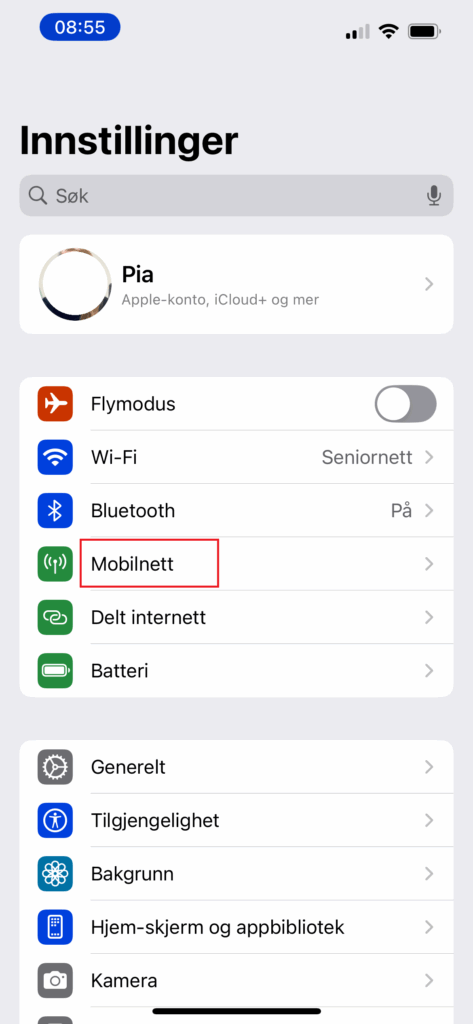 2. Trykk på Tilkoblinger eller Mobilnettverk.