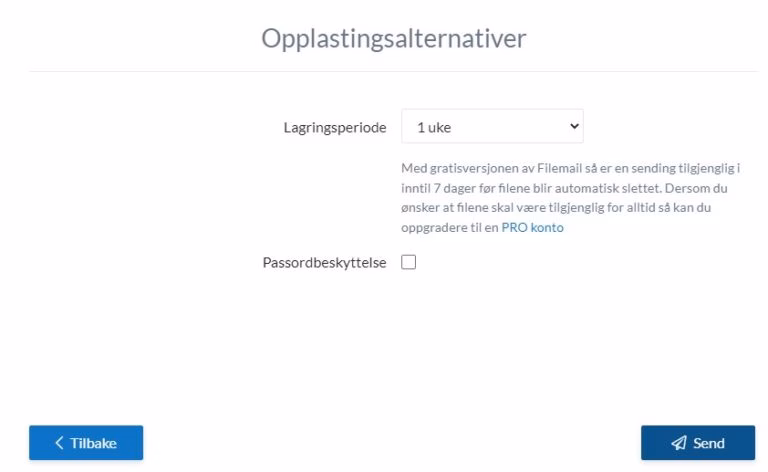 Oppskriften gjelder ved bruk av PC. Her brukes nettstedet Filemail.com. Det finnes andre tilsvarende steder, men vi har sett på et som er gratis og enkelt å bruke.