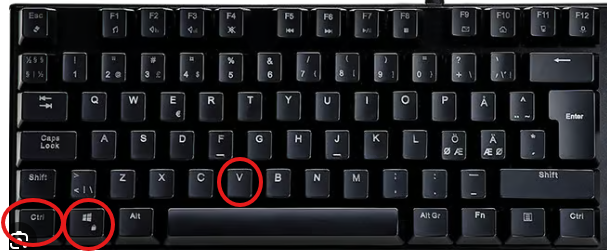 På tastaturet, trykk og hold på Ctrl-tasten og windows-tasten. Mens du holder disse nede trykk på bokstaven V. (En slik hurtigtast skrives vanligvis i tekst som CTRL+Win+V)