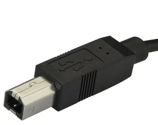 USB-B. En firkantet plugg som gjerne brukes på kabel mellom skriver og PC.