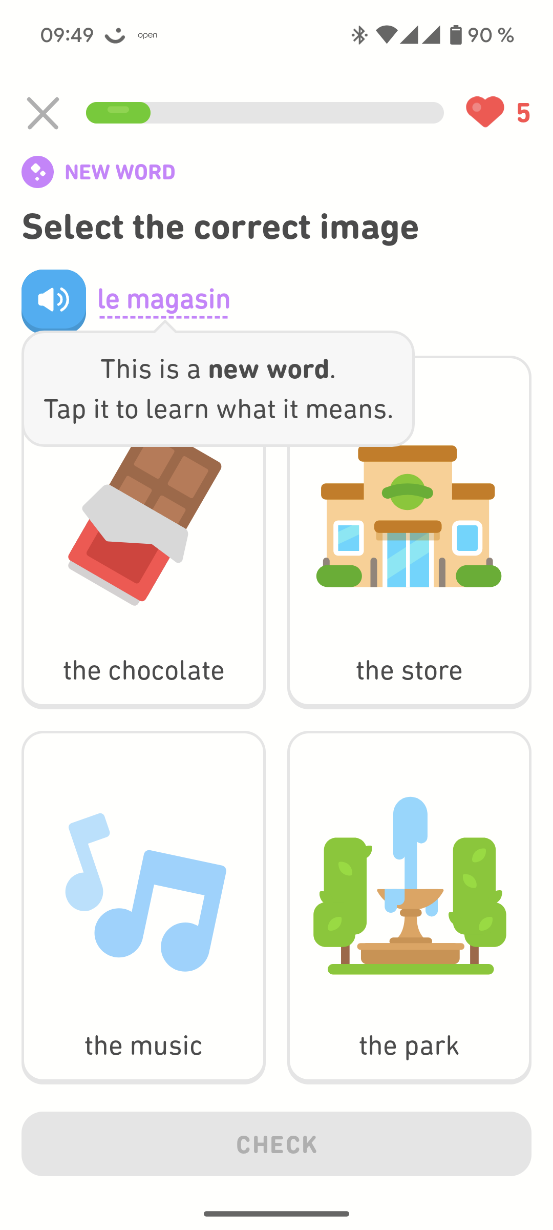 Her trykker du på det svaret du tror er korrekt og så på Check