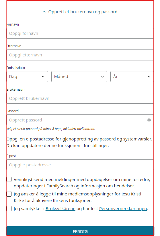 Klikk FERDIG når du har gitt fra deg de opplysningene som er nødvendig.