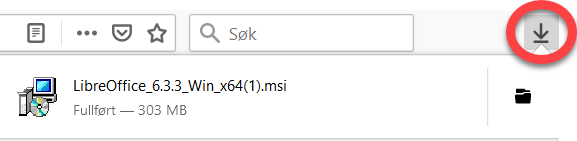 Trykk på pilen som peker nedover for at nedlastingen skal vises.