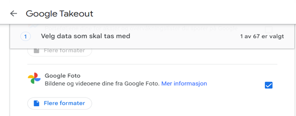 - Velg Google Foto: Fjern markeringen for alle andre tjenester og velg kun Google Foto.