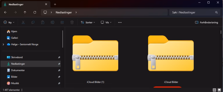 Her ser du nedlastingsmappen i filutforsker