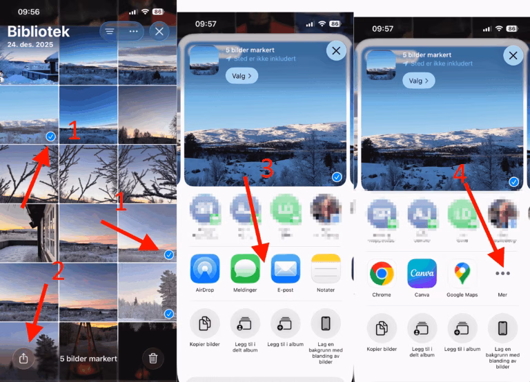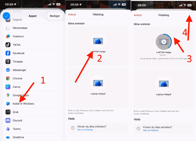 Under kan du se de neste trinnene i overføring av bilder trådløst: