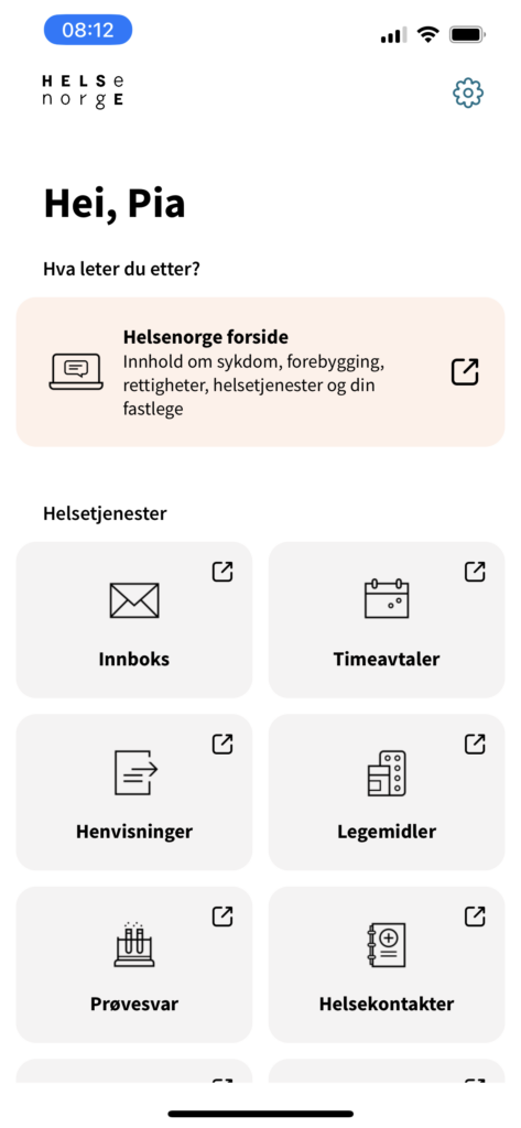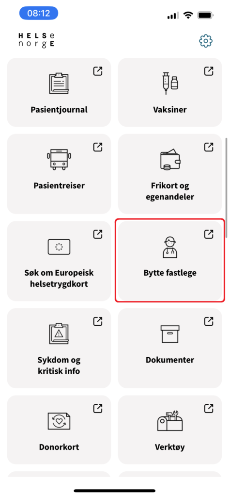 Når du er logget inn i Helsenorge-appen må du bla ned på forsiden til du finner “Bytte fastlege“. Trykk på ikonet.