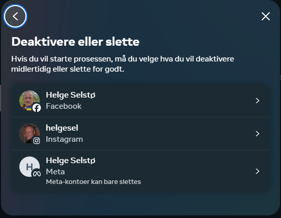 Hvis du har flere kontoer hos Meta, kan du nå velge den du vil slette.