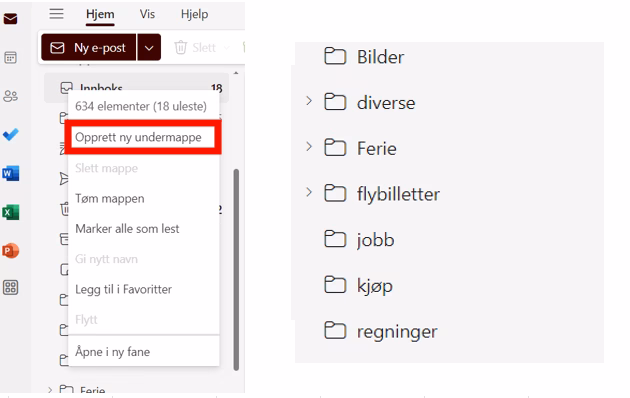 Microsoft sin e-post har følgende fremgangsmåte for å opprette ny undermappe.