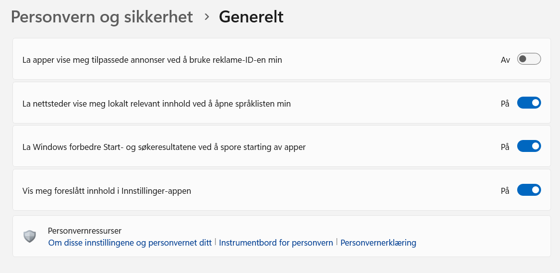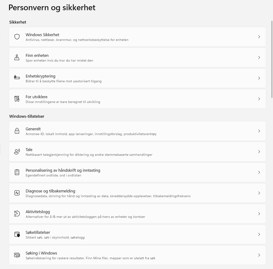 - Gå til Innstillinger og velg “Personvern og sikkerhet”: