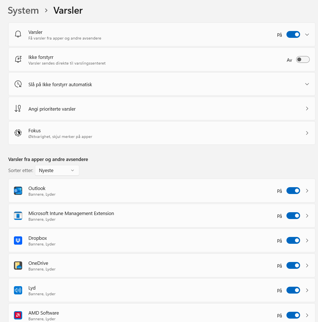 - Her kan du slå av alle varsler (på toppen) eller du kan slå av og på for de ulike appene.