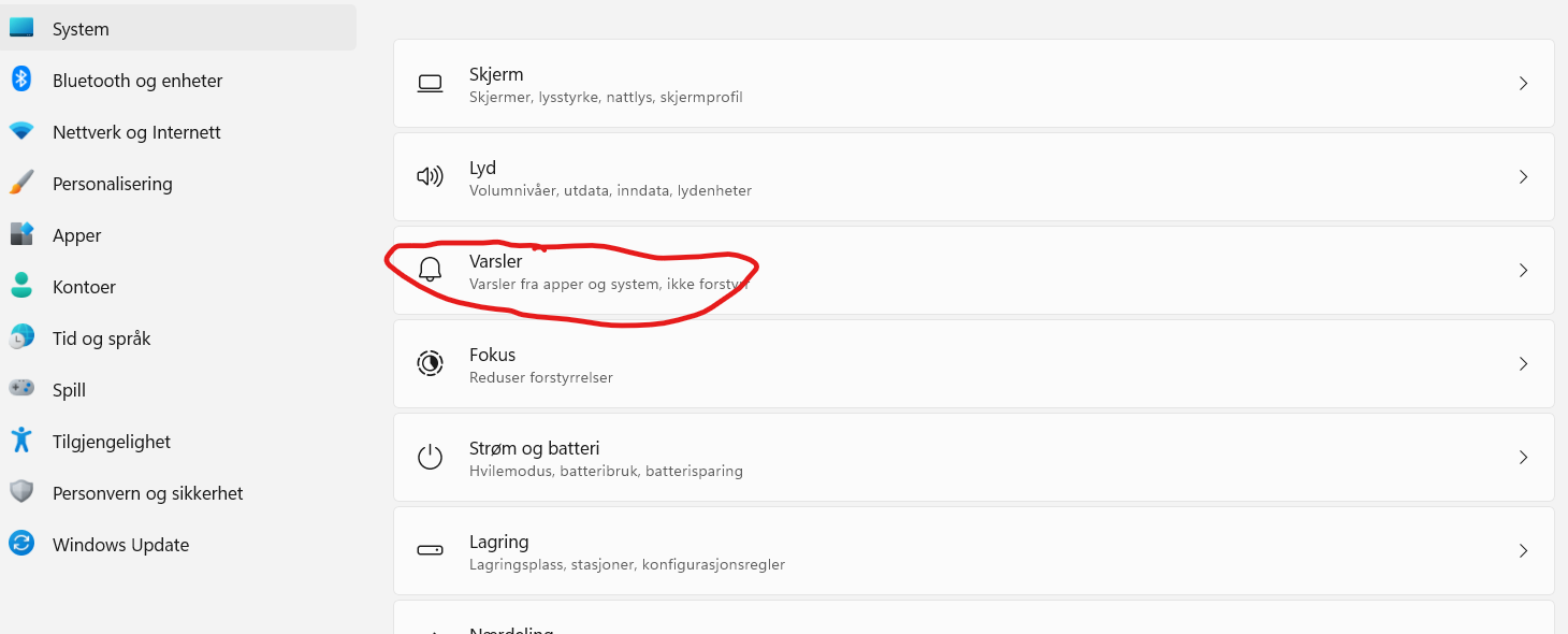- Gå inn på Innstillinger og velg “System” i venstremeny.