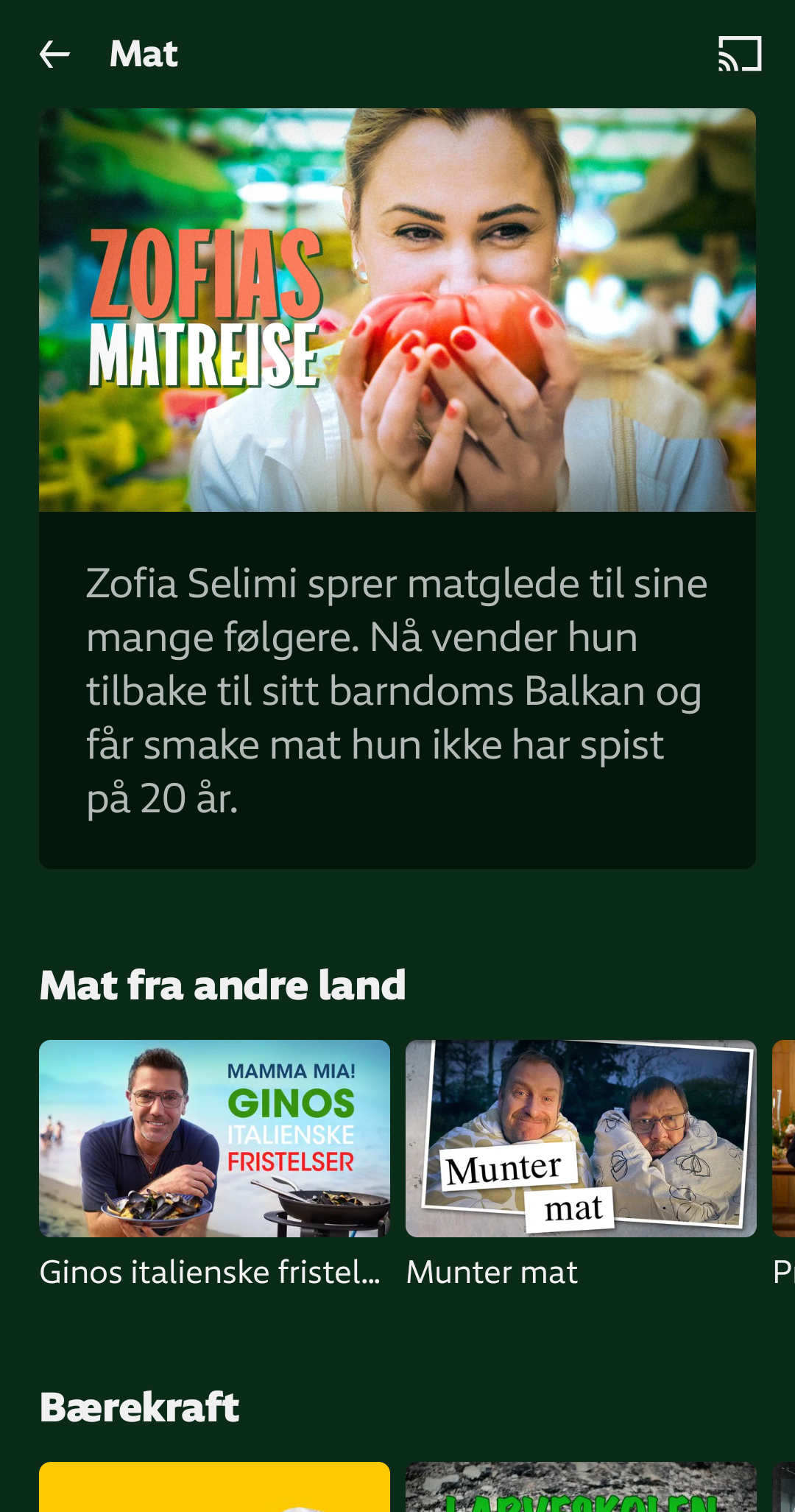 Eksempel: Jeg trykker på kategorien Mat og da vises dette: