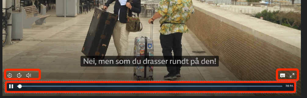 Symbolet ved siden av totaltiden er teksting. Dette er meget praktisk fordi du da kan velge om du vil ha teksting eller ikke.
