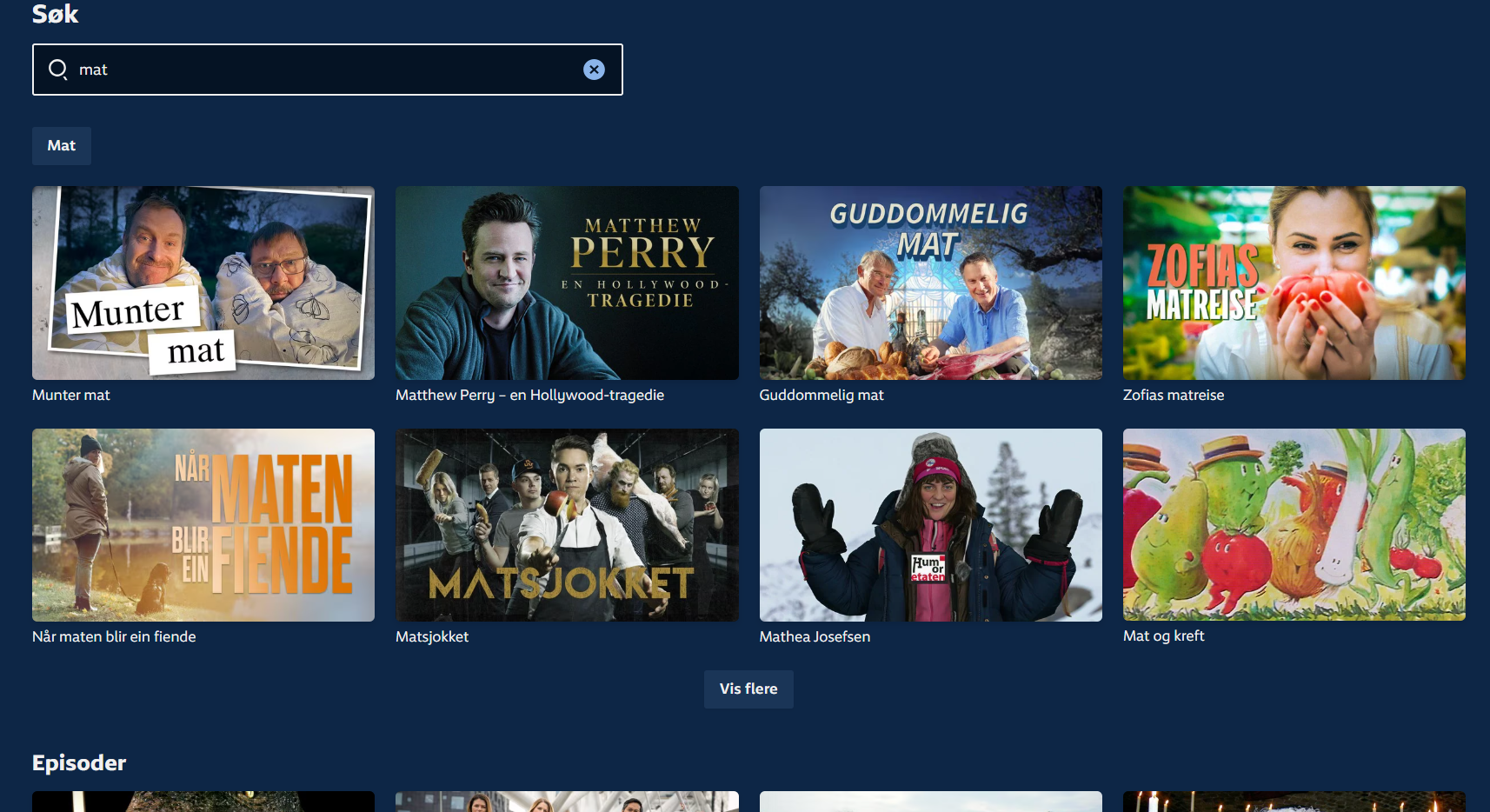 Det vises mange flere programmer hvis man ruller nedover. NRK prøver å vise de programmene de tror er mest populære først.
