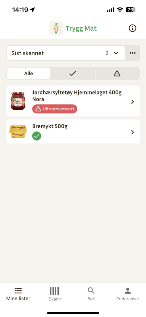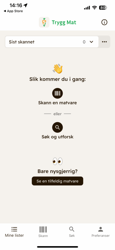 Appen er enkel i bruk og du trenger ikke logge deg på eller lage noen bruker. Det eneste du må gjøre er å tillate at appen bruker kameraet ditt når den spør om det. Deretter er det bare å skanne i vei. Du kan også legge inn stoffer du er allergisk mot og du får beskjed om dette. Du kan se hvilket land matvaren er produsert i og du vil også se alt innholdet i den.