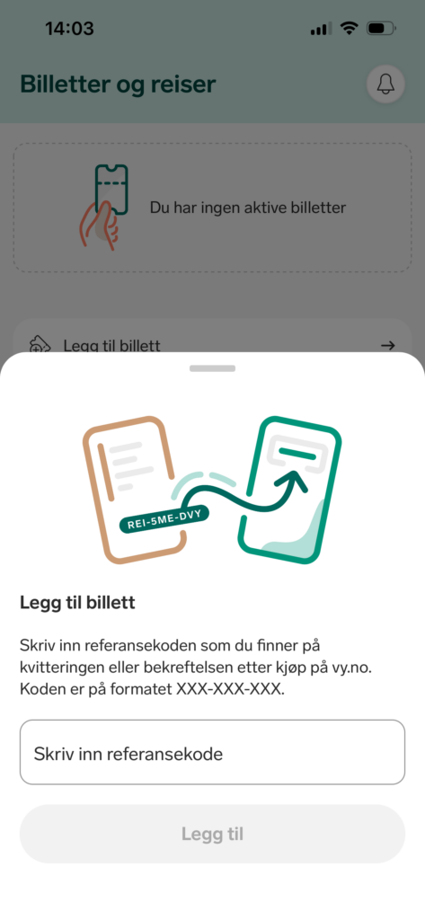 Kanskje andre har kjøpt billett til deg? Da kan du legge billetten din i appen ved å oppgi referansekoden.