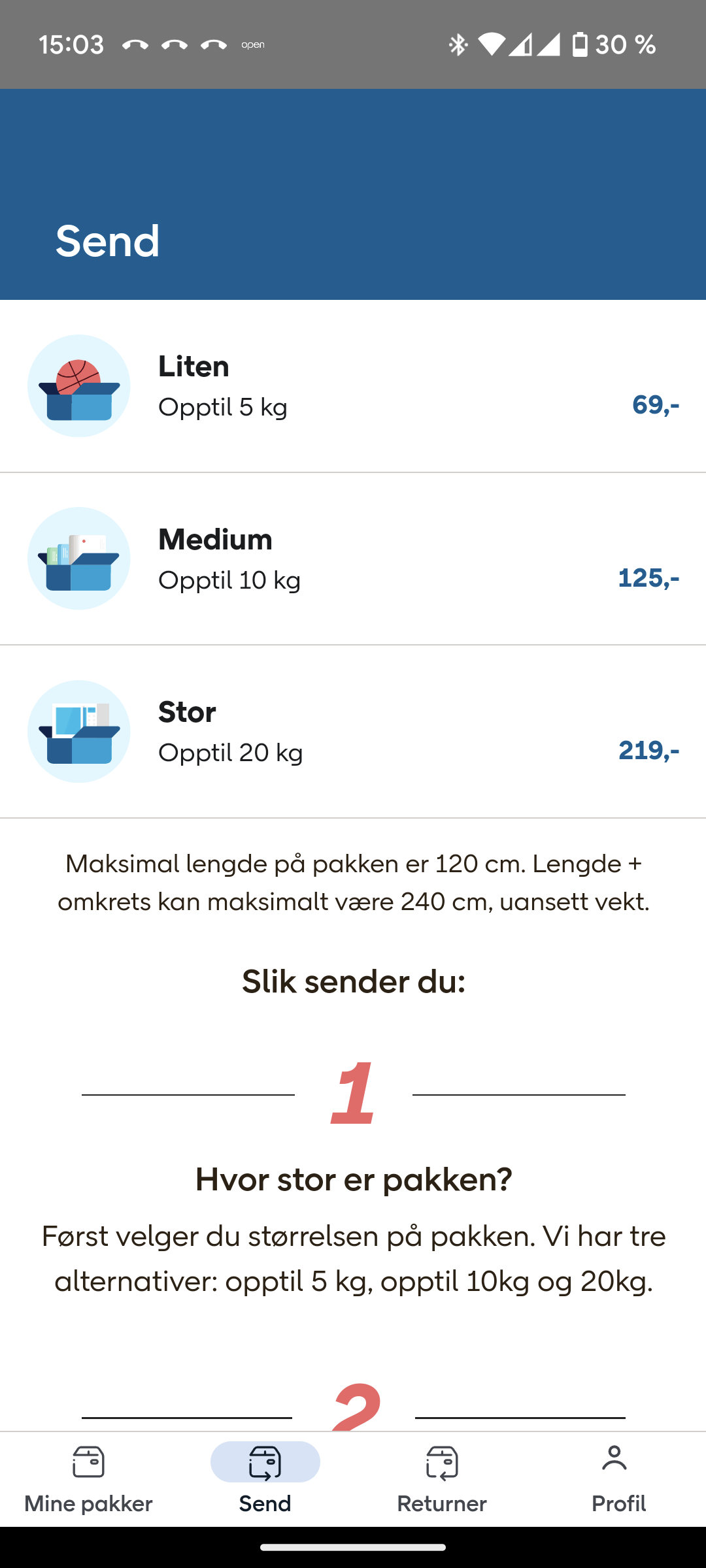 Pakker som sendes til deg kan du normalt hente enten i en butikk, et postkontor (der det finnes) eller i en pakkeboks. Blir pakken sendt til en pakkeboks MÅ du ha appen for å få låst opp den boksen der pakken din ligger.