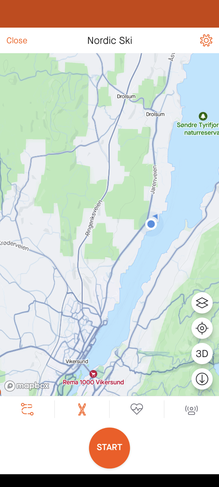 Så er det bare å trykke på “Start”. Da begynner Strava å ta opp. Den logger hvor du beveger deg, om du går oppover eller nedover, fart osv.