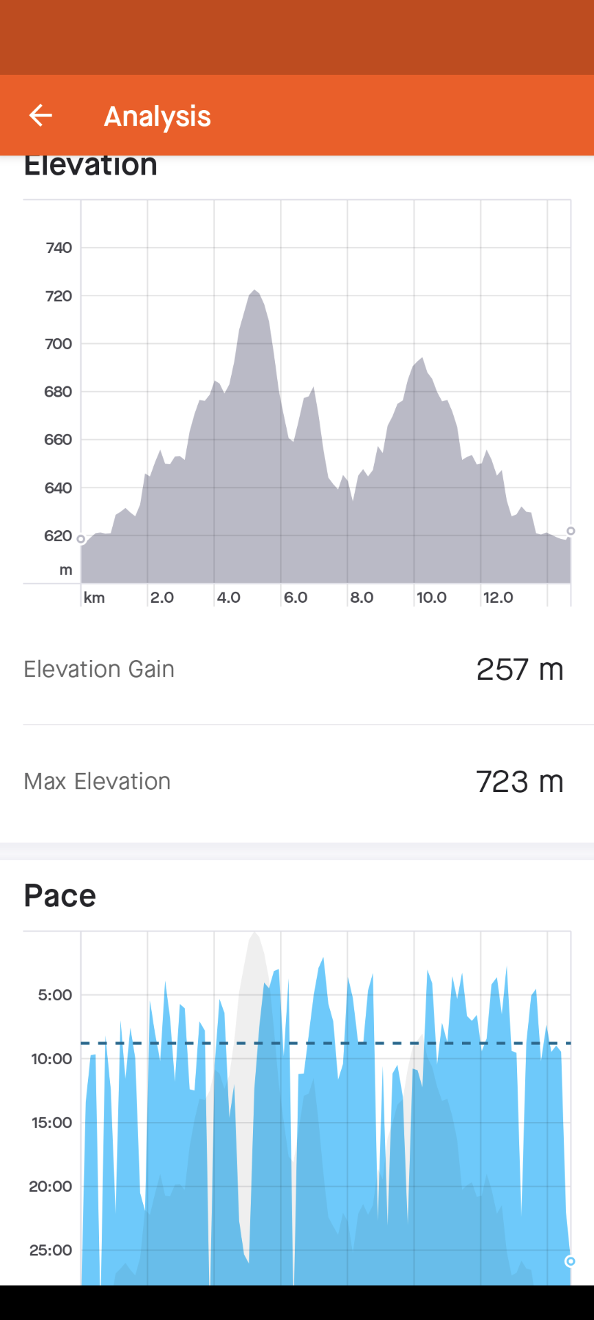 Vi kan også se mere data om turen. Trykker på “View Analysis” og får opp dette: