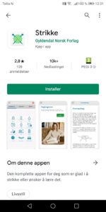 Det finnes en mengde strikke-apper. Også noen gode på norsk, som «Strikkekalkulator», «Maskeingeniøren» eller «Strikkehjelpen». Alle disse appene er gode og anbefales av strikkere, men de er ikke gratis. Appen Strikke er gratis, og finnes både i App Store eller Google Play. Strikke er utgitt av Gyldendal. Du kan kjøpe oppskrifter inne i appen, men omgangsteller, felle- og økningskalkulator og ikke minst, masketabell for å beregne strikkefastheten, er alle gratis å bruke.