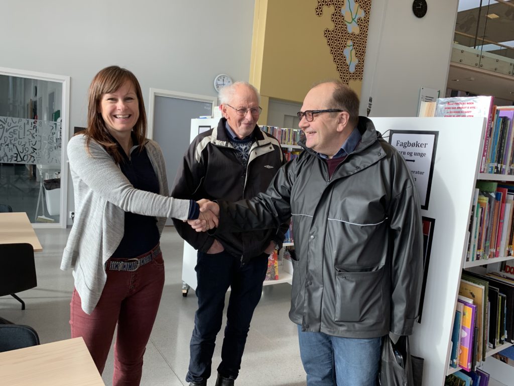 Biblioteksjef Heidi Anthonsen Lura, Øystein Johannessen og Kjell Brende.